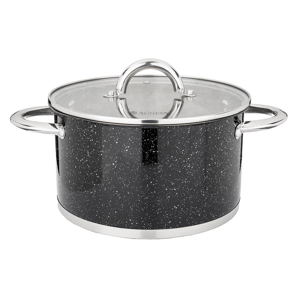 КАСТРЮЛЯ AGNESS СО СТЕКЛЯННОЙ КРЫШКОЙ, НЕРЖ.СТАЛЬ, СЕРИЯ BLACK MARBLE 4,6Л 22Х12,5СМ (КОР=4ШТ.)