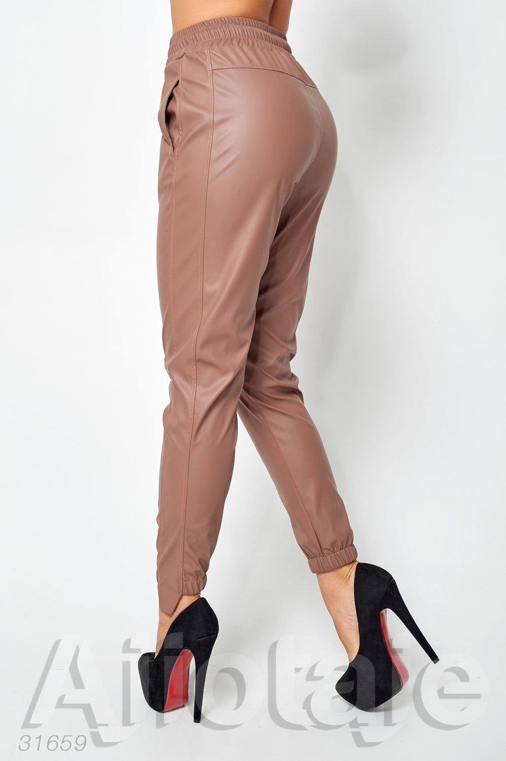 Кожаные брюки цвета мокко с талией на кулиске