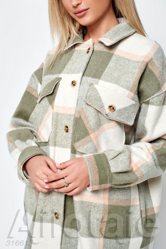 Пальто рубашка в оливковую клетку с карманами