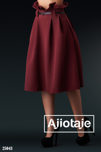 Юбка-колокол бордового цвета с ремешком