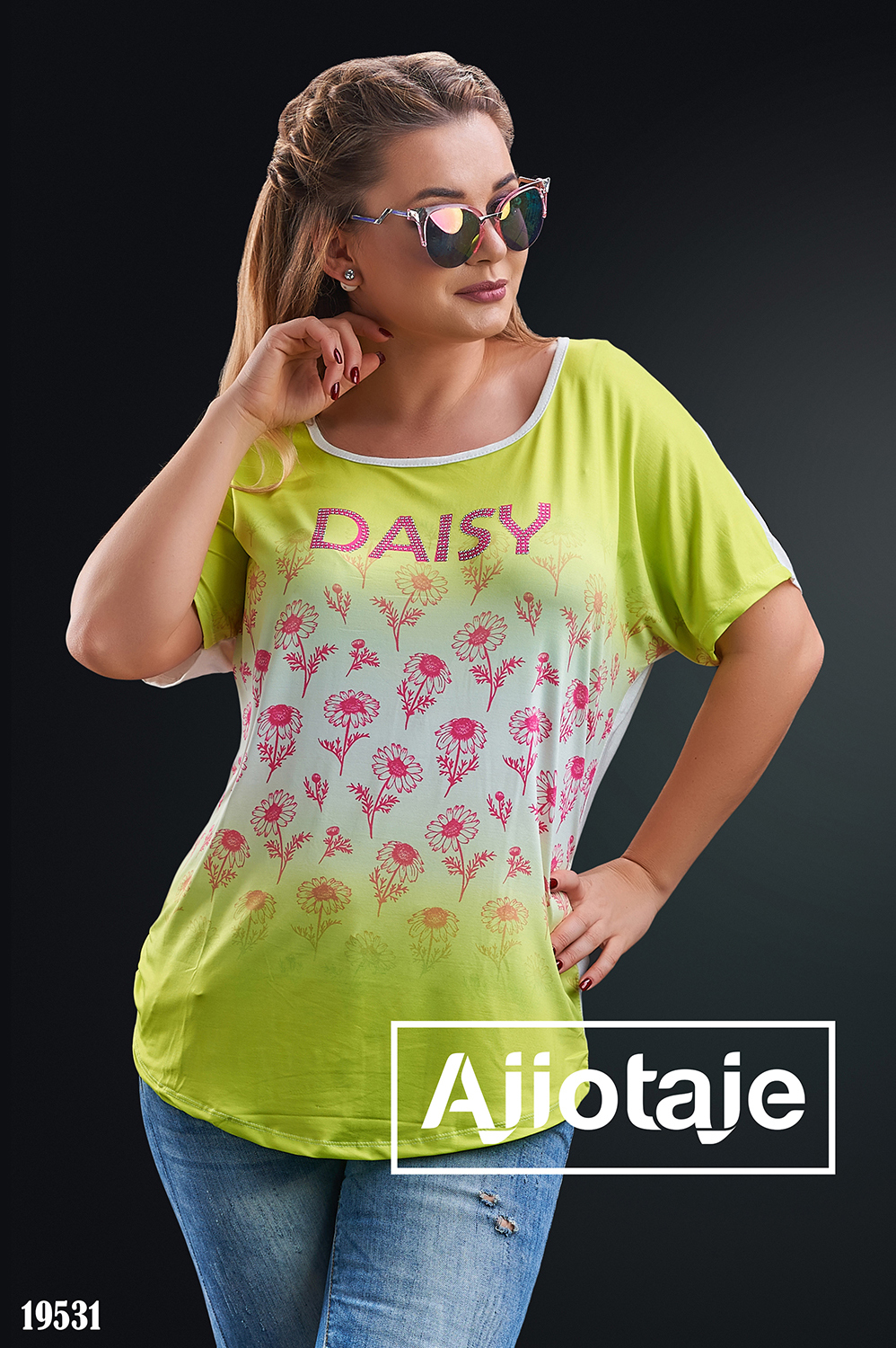 Яркая футболка, украшенная стразами
