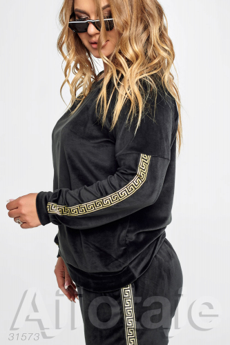 Черный костюм с лампасами в принт меандр