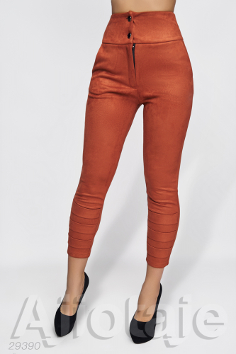 Кирпичные замшевые укороченные брюки