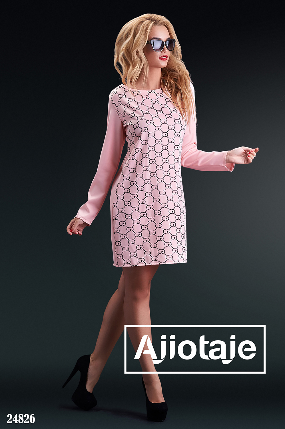 Платье мини в животный принт цвета пудра