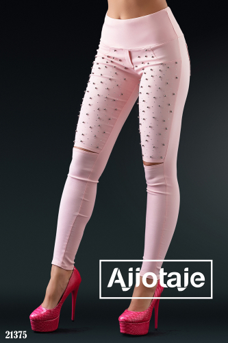 Леггинсы розового цвета с жемчугом и стразами