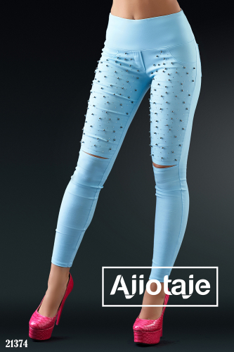 Леггинсы голубого цвета с жемчугом и стразами