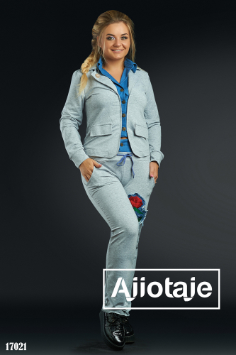 Костюм серого цвета с нашивками розы