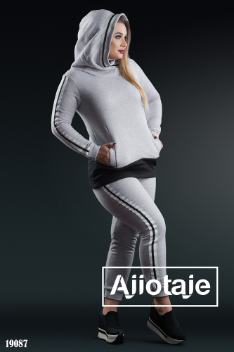 Спортивная двойка серого цвета с худлоном