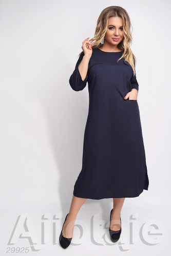 Хлопковое платье темно-синего цвета с рукавом 3/4