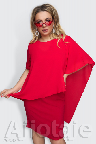 Платье миди красного цвета с имитацией накидки