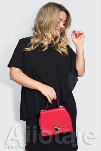 Платье миди черного цвета с имитацией накидки