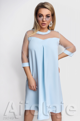 Платье голубого цвета с прозрачными рукавами