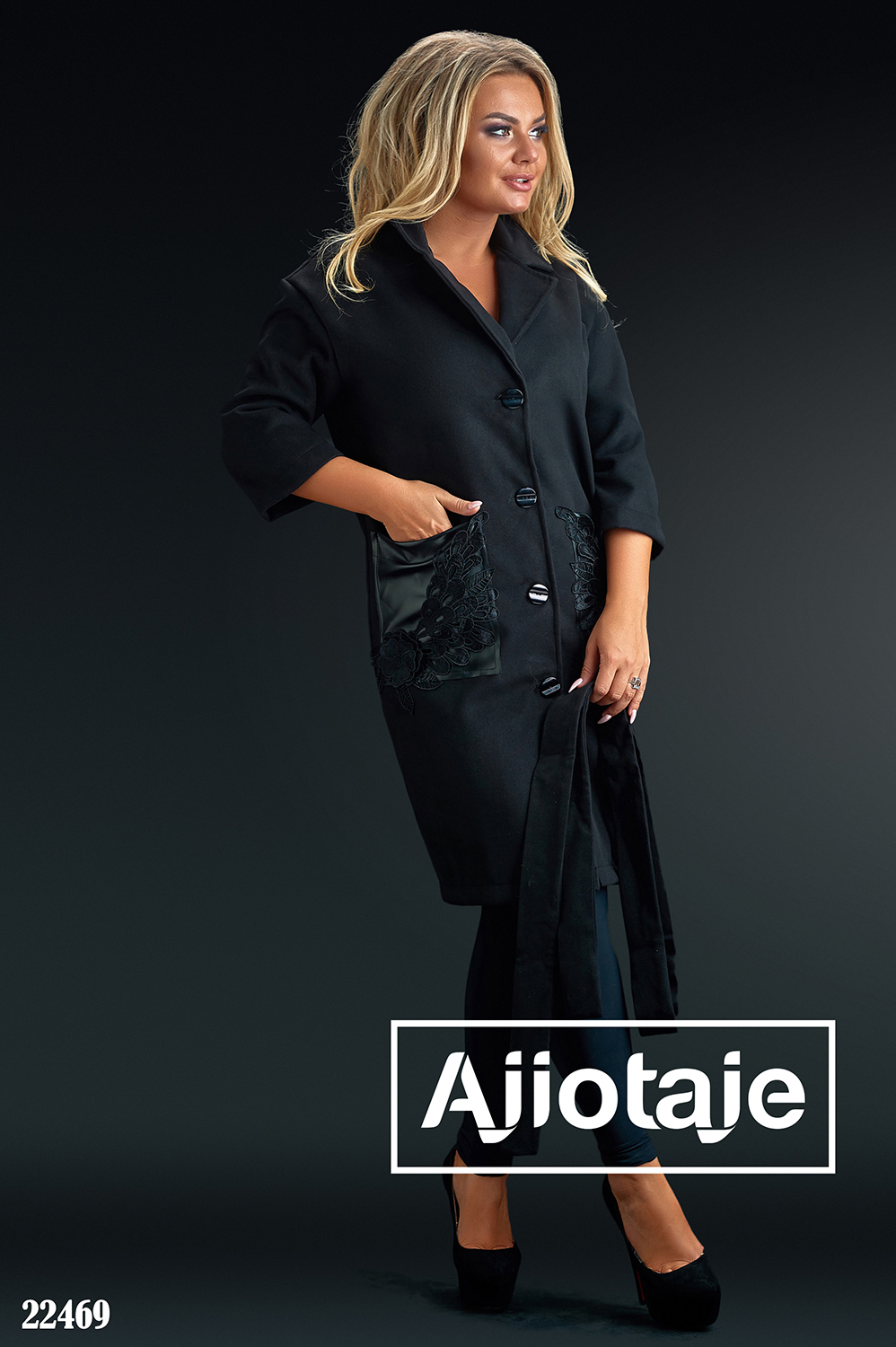 Кашемировое пальто черного цвета с кружевом