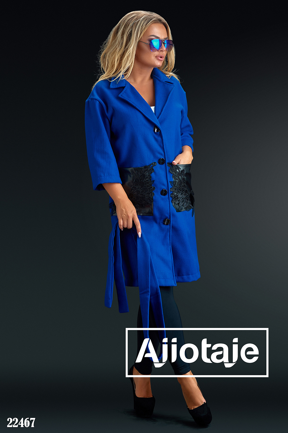 Кашемировое пальто цвета электрик с кружевом