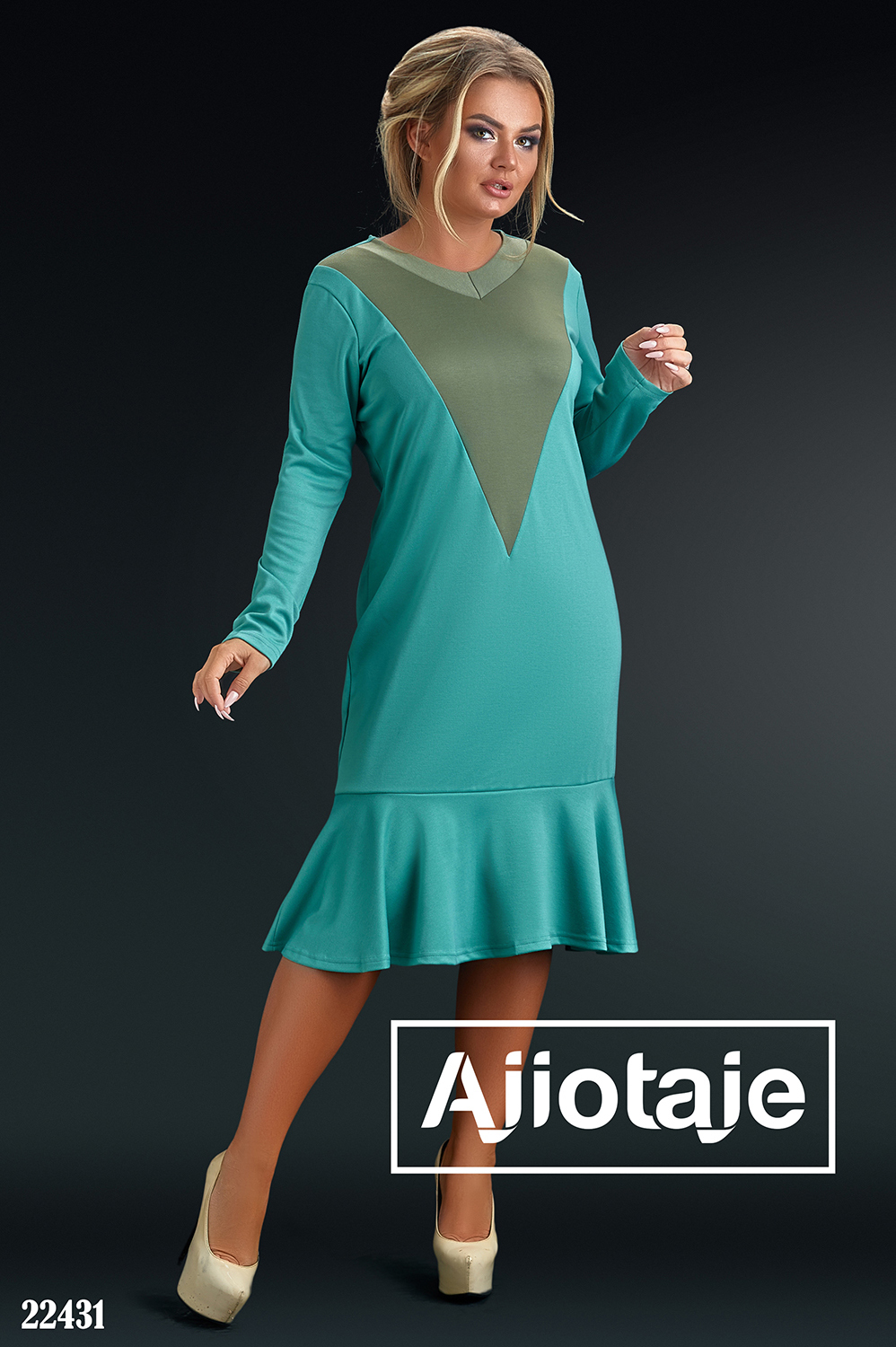 Платье мятного цвета с юбочкой годе