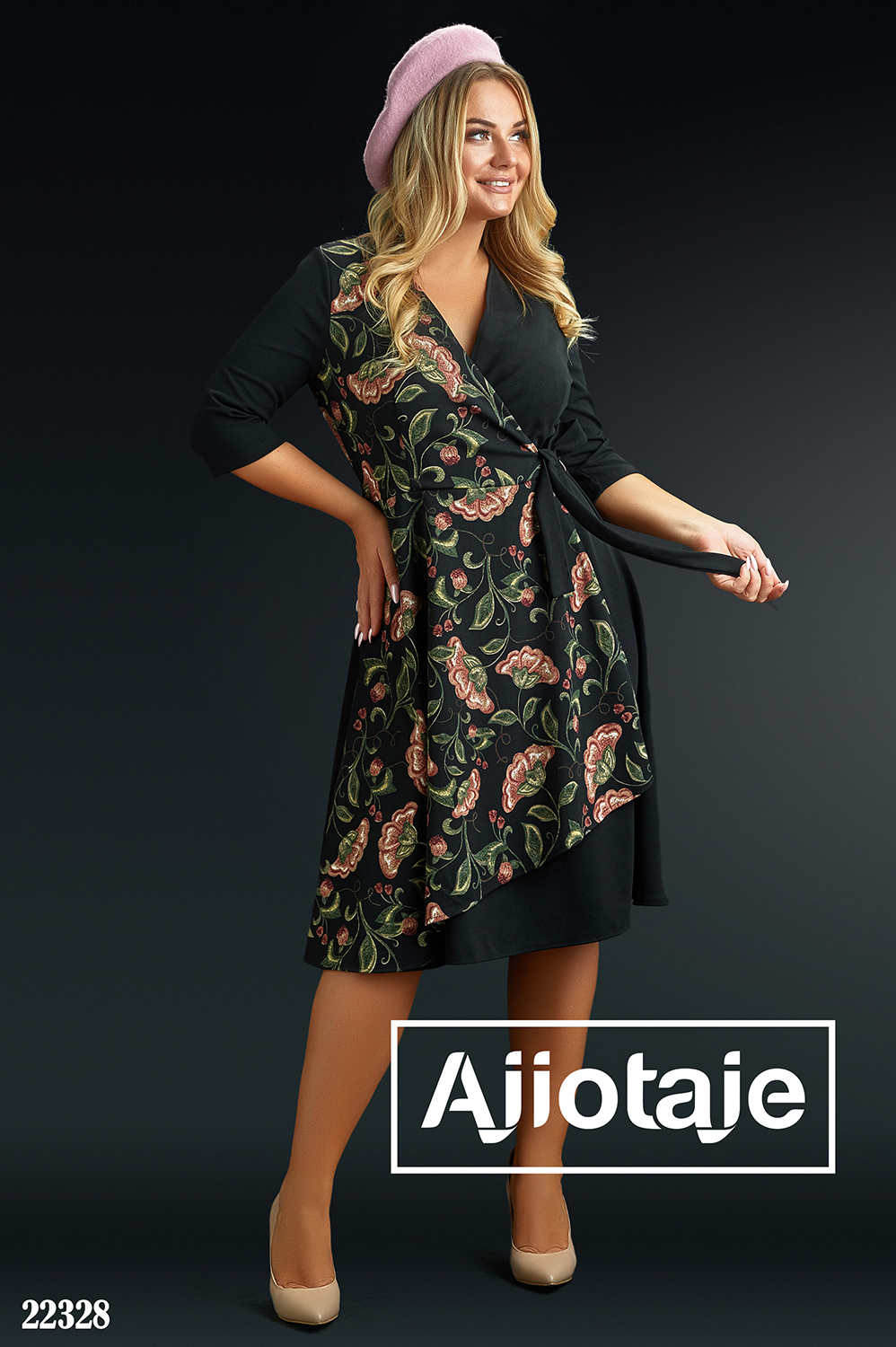 Платье с декольте на запах черного цвета