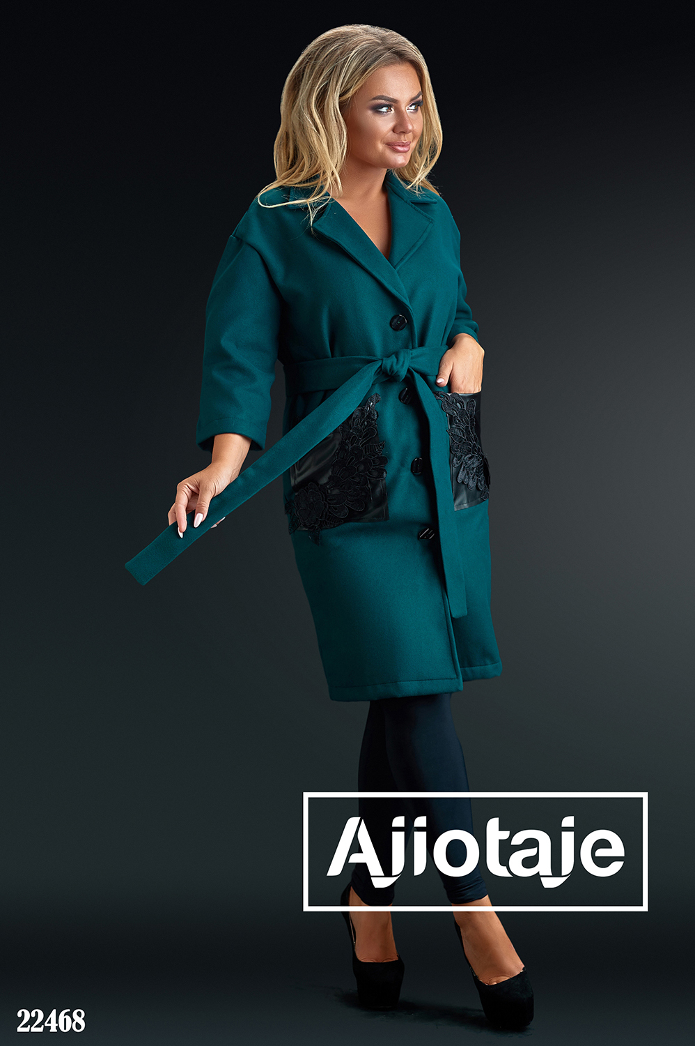 Кашемировое пальто бутылочного цвета с кружевом