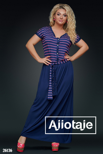 Платье в пол темно-синего цвета с пояском