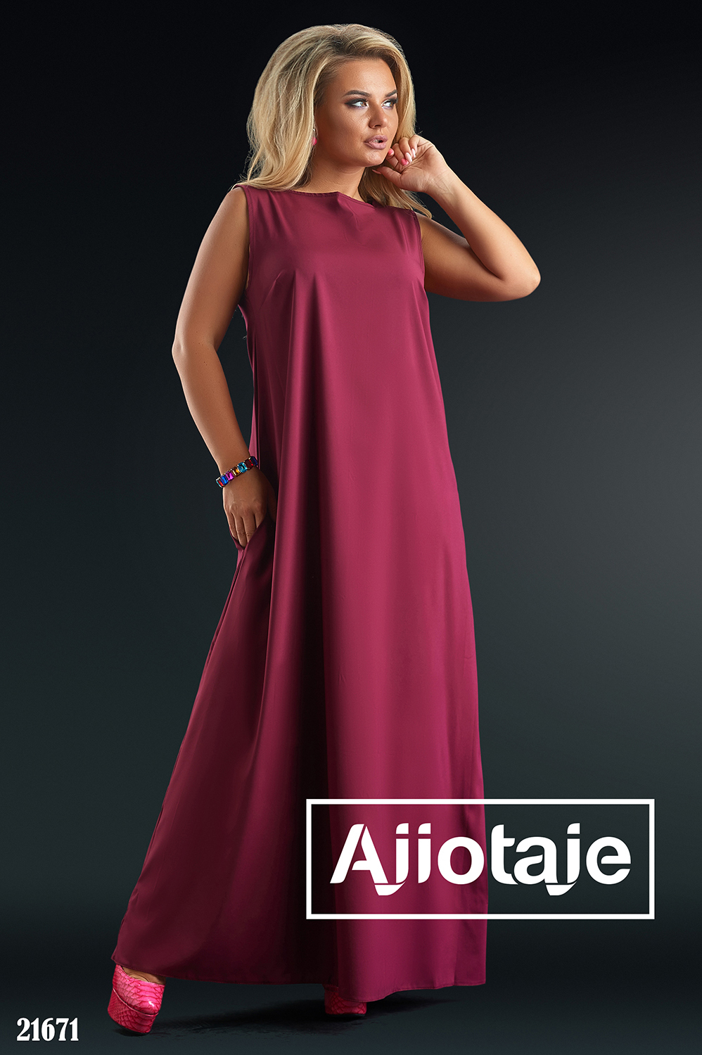 Платье макси цвета марсала без рукавов