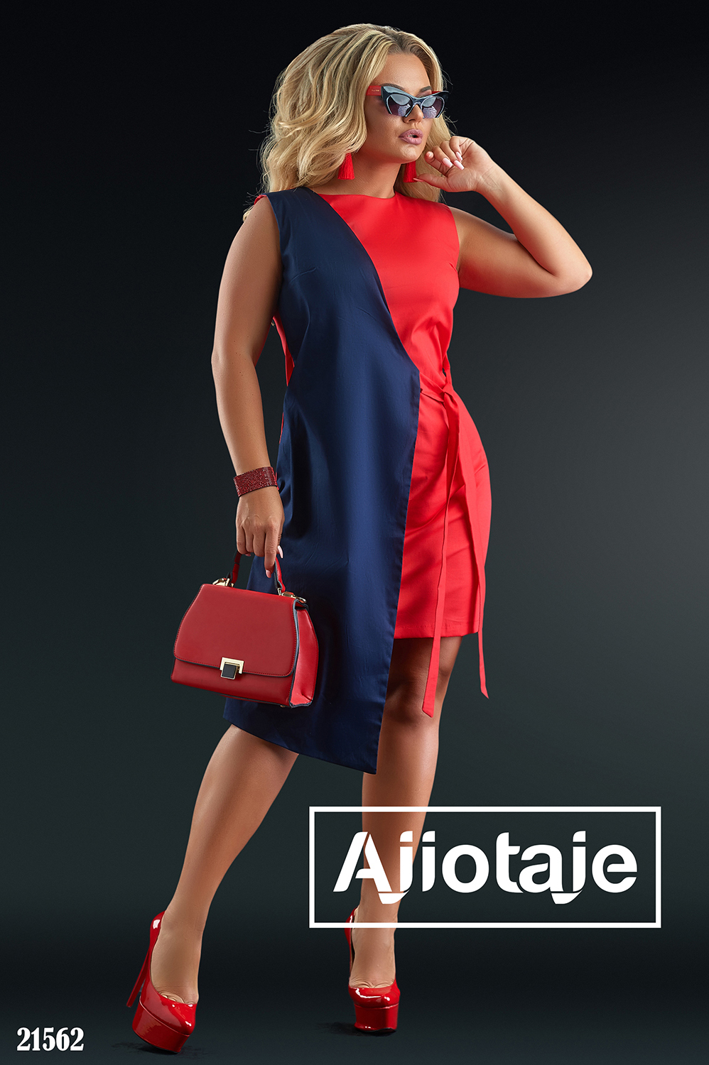 Двухцветное хлопковое платье с завязками