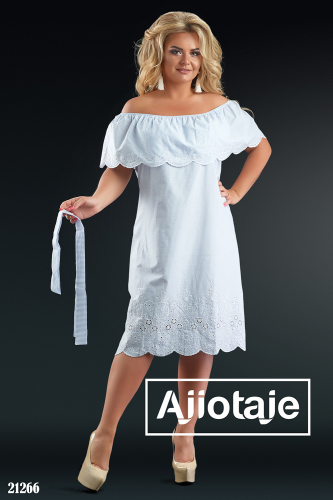 Белое платье распашонка с вырезом "Каре"