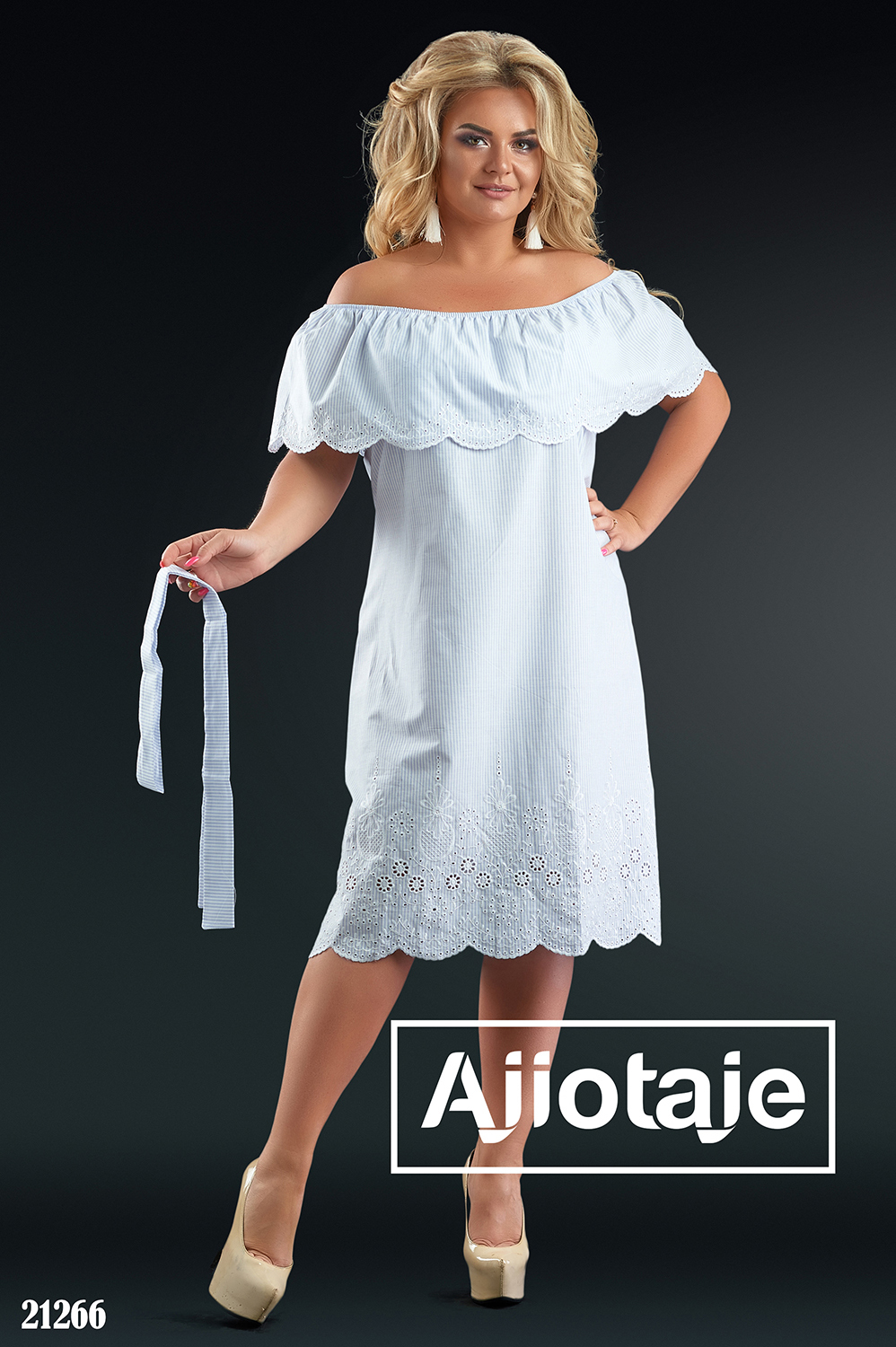 Сарафан в полосочку с белой вышивкой