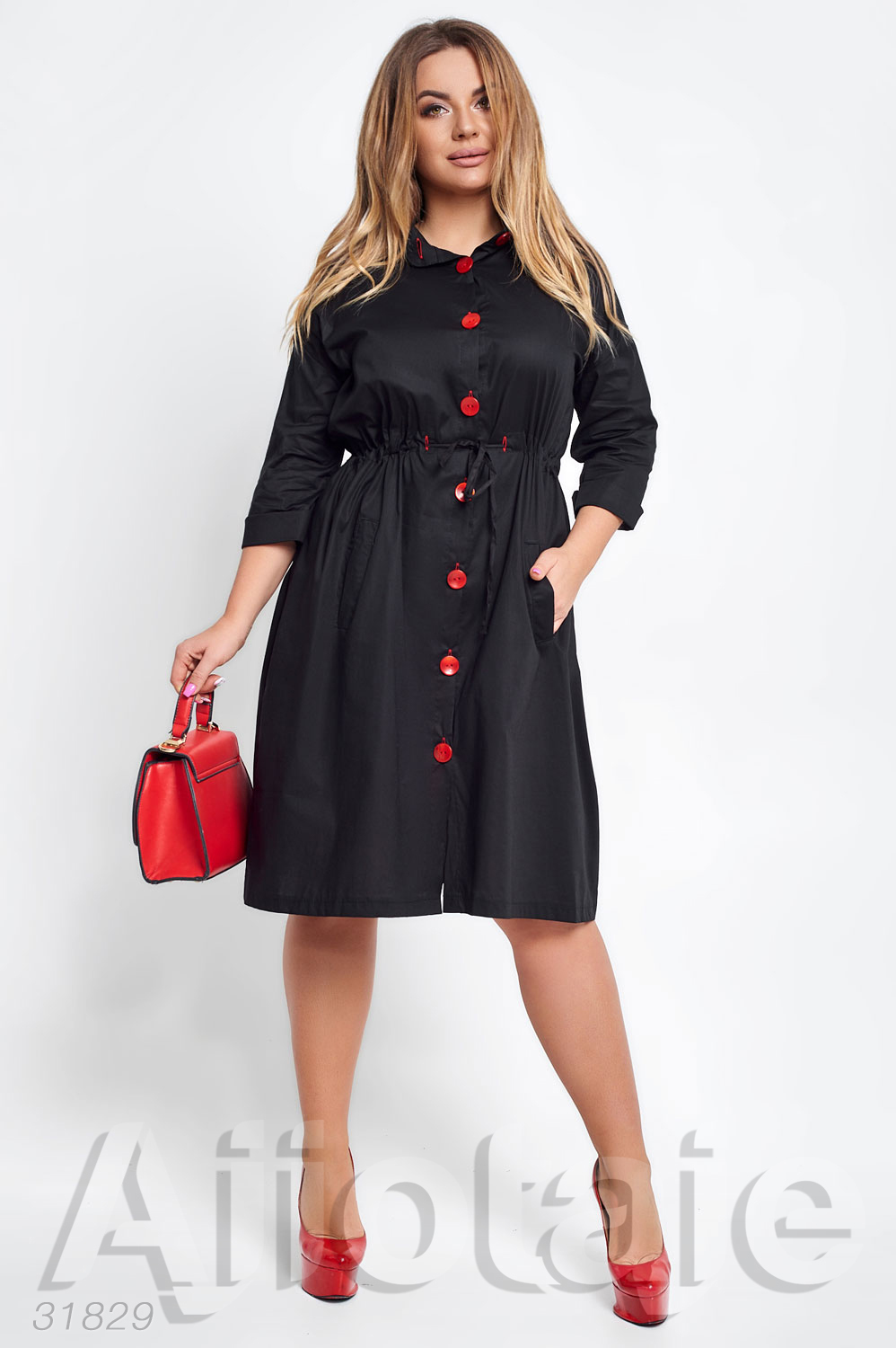 Черное платье рубашка с талией на кулиске