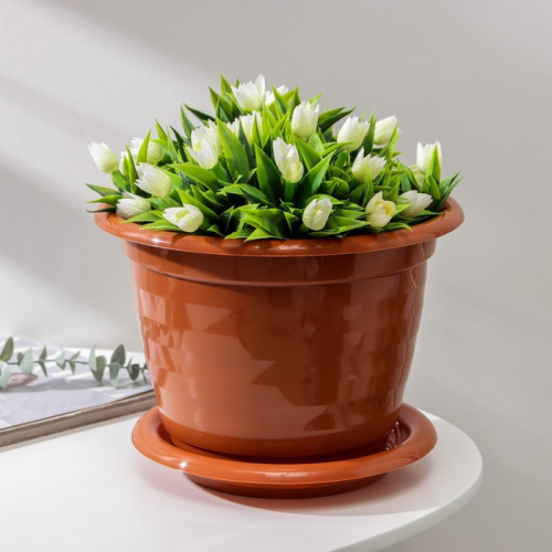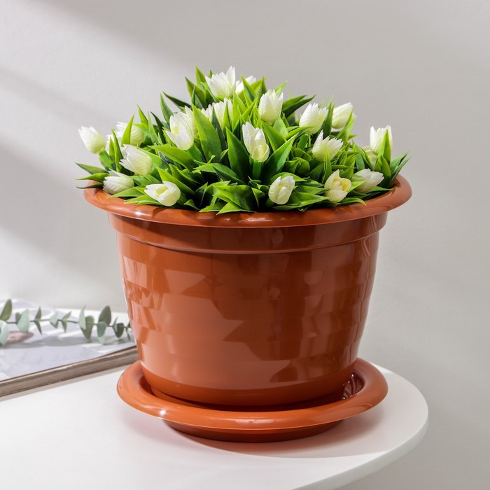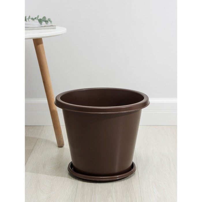 Горшок для цветов с поддоном «Виола», 5 л, пластиковый, коричневый