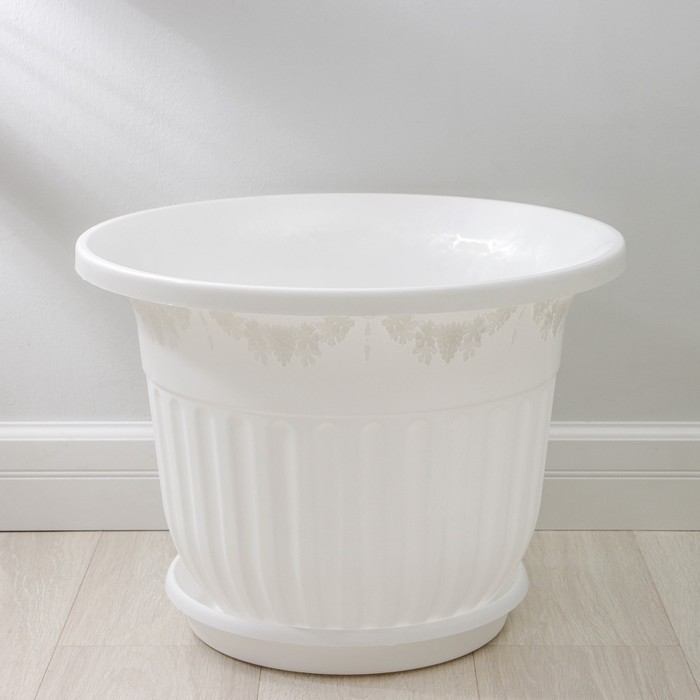 Горшок для цветов с поддоном «Лозанна», 25 л, пластиковый, белый