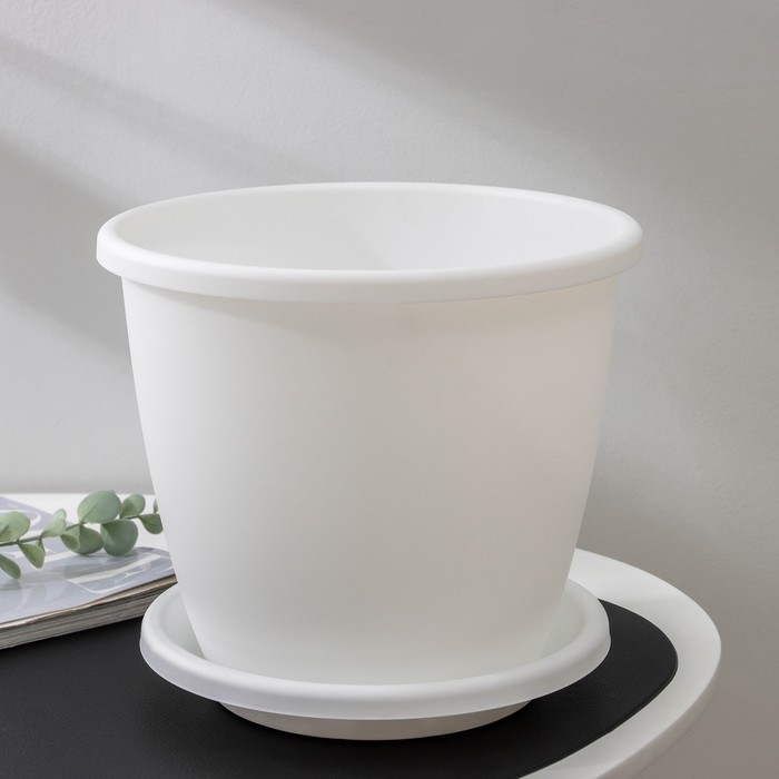 Горшок для цветов с поддоном «Виола», 5 л, пластиковый, белый