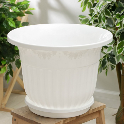 Горшок для цветов с поддоном «Альтернатива. Афина», 11 л, пластиковый, белый