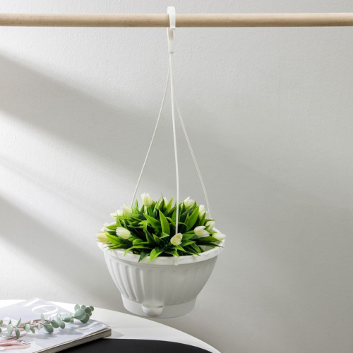 Кашпо уличное для цветов Альтернатива «Мирабель», 2.5 л, подвесное, с прикорневым поливом, пластик, белое