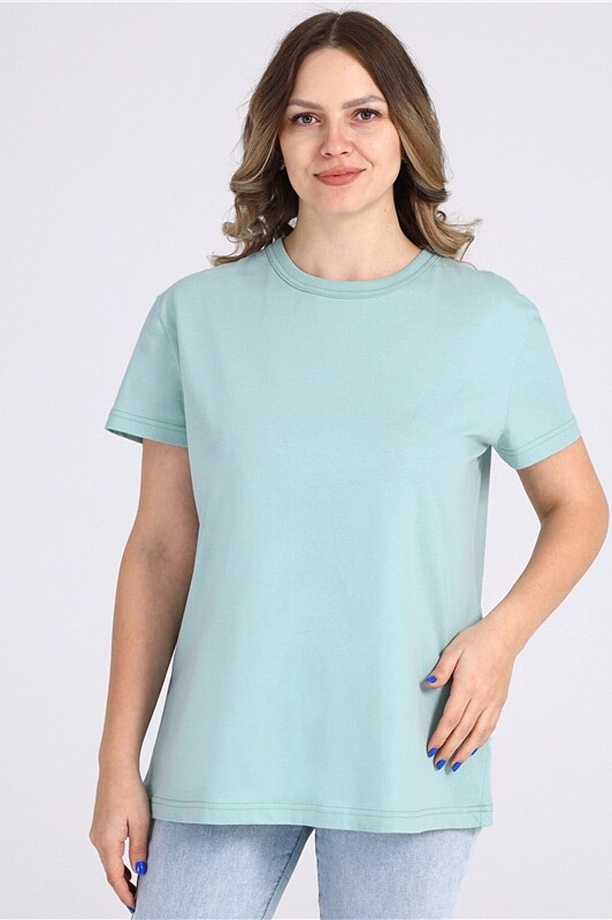 Футболка АПРЕЛЬ #778308Белые пятнышки на бирюзе