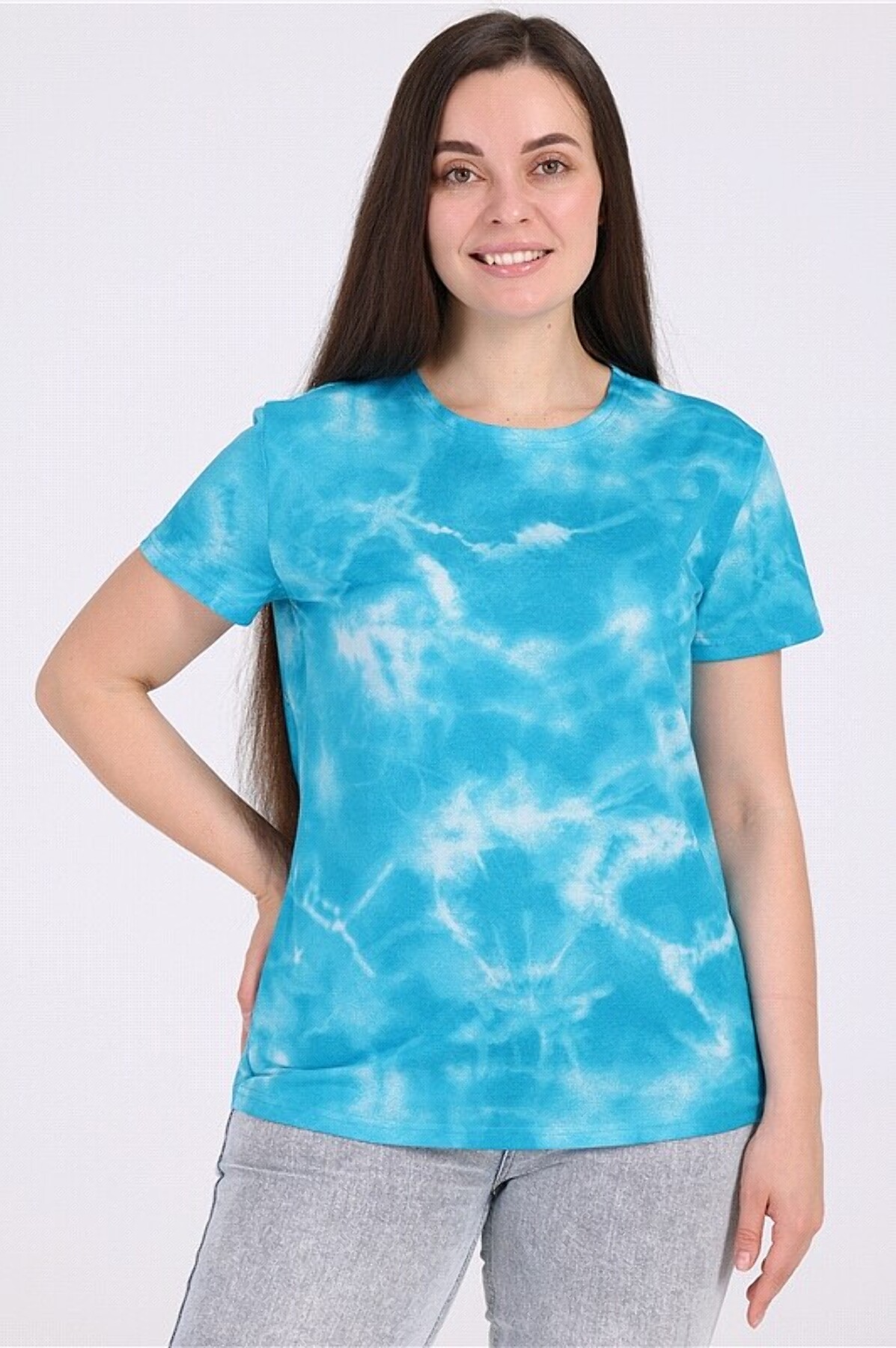 Футболка АПРЕЛЬ #855426Тай-дай на морской волне