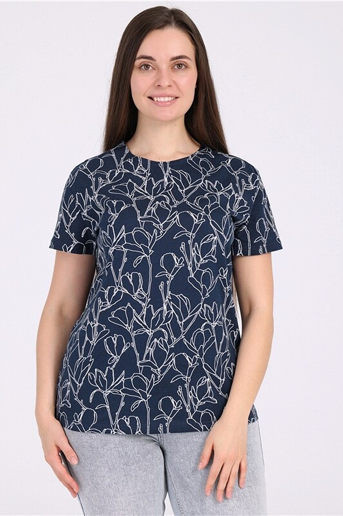 Футболка АПРЕЛЬ #855424Белые ирисы на темно-синем