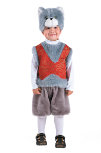 Дед Мороз плюш красный дет. Шуба, шапка, пояс, варежки, борода