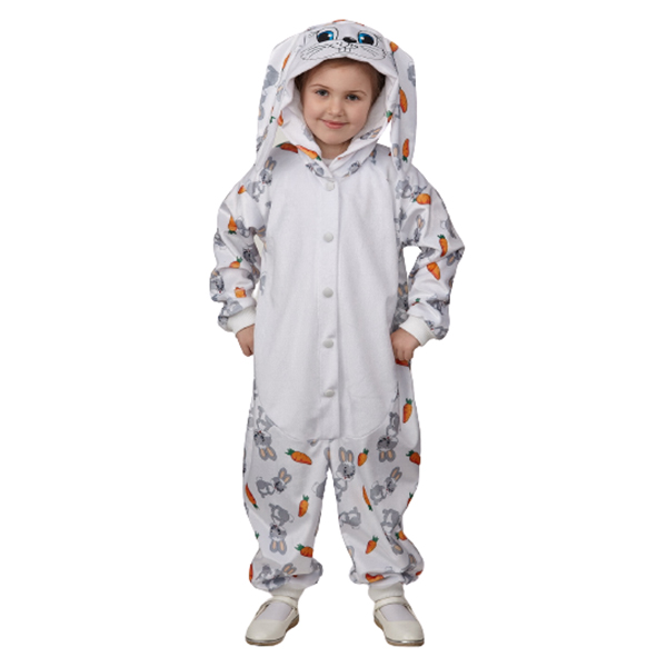 Карнавальный костюм Кигуруми Зайчик принт с вышивной мордочкой р.134-68 /текстиль/Батик/ в Нижнем Новгороде