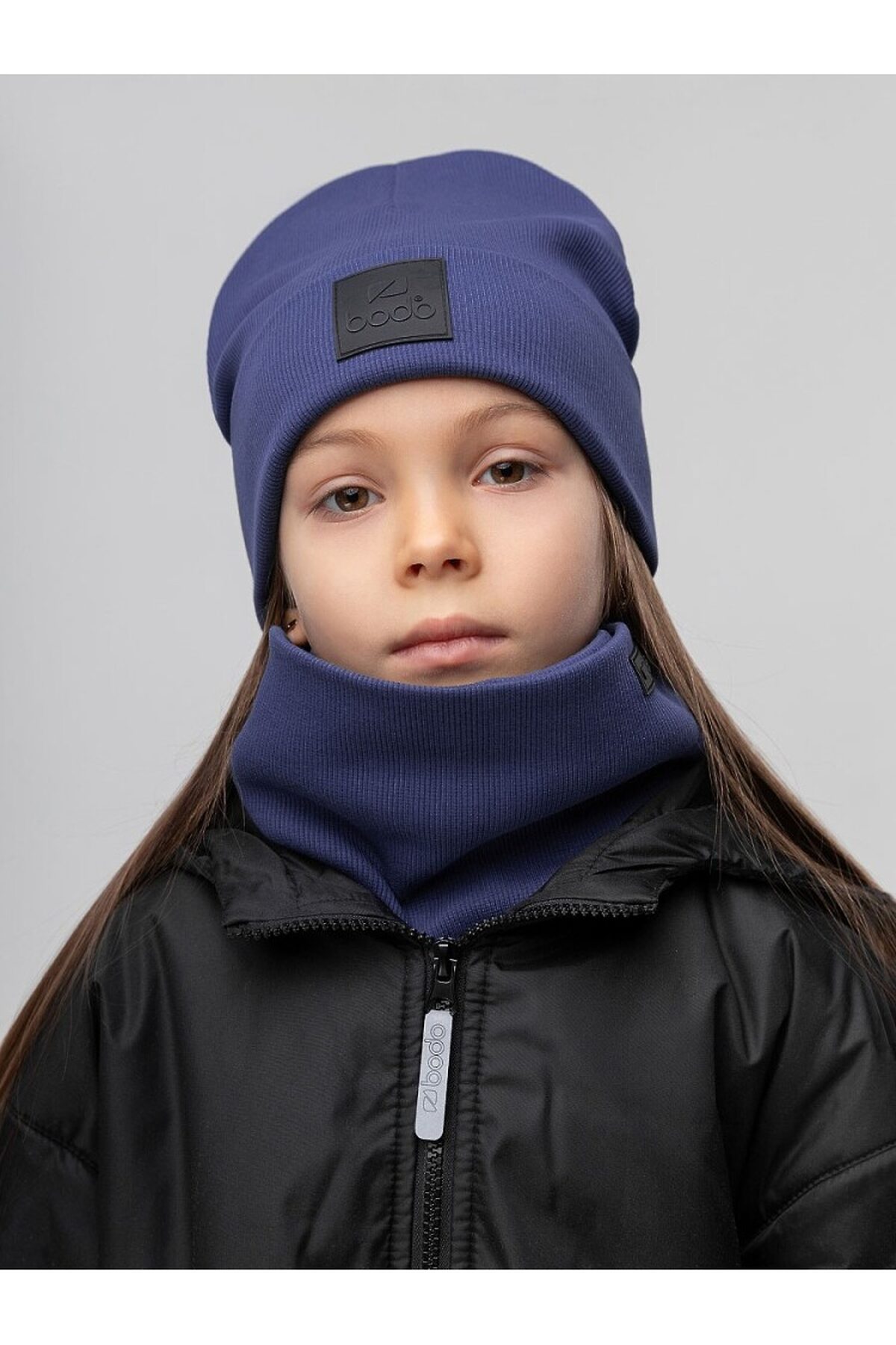 Комплект (шапка, снуд) с ПВХ нашивкой 13-162MU; индиго