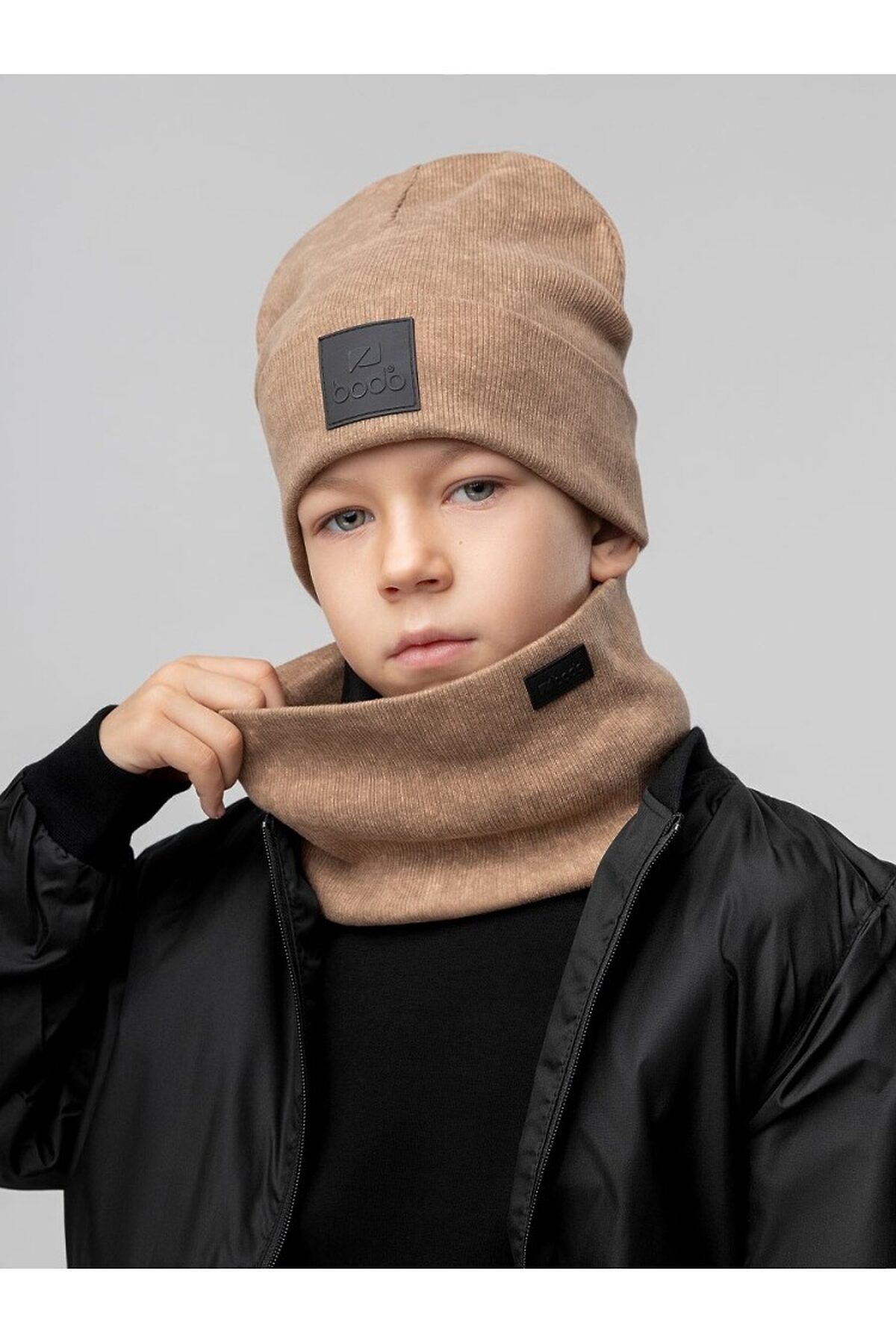 Комплект (шапка, снуд) с ПВХ нашивкой 13-162MU; светло-коричневый