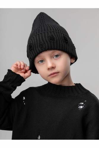 Шапка вязаная "рваная" 10-413MU; черный