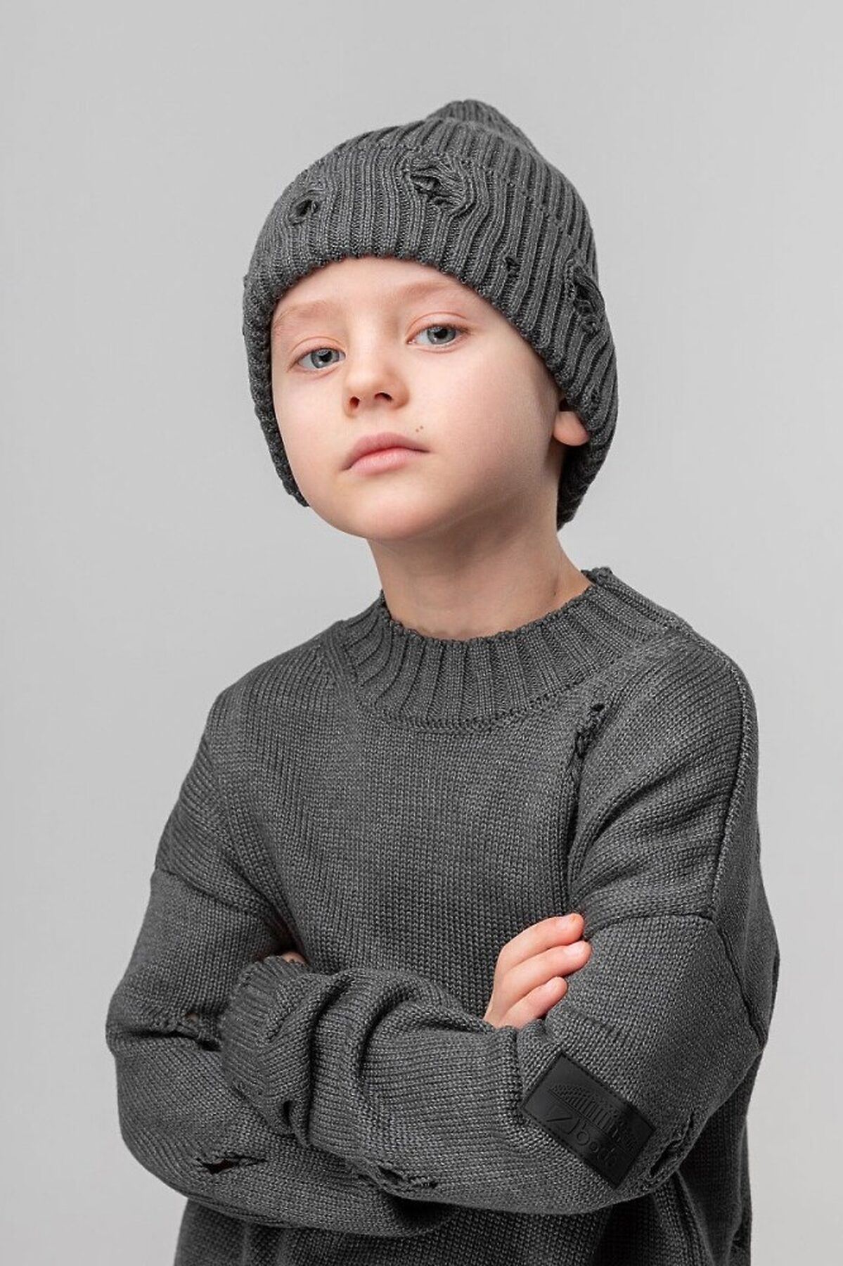 Шапка вязаная "рваная" 10-413MU; серый
