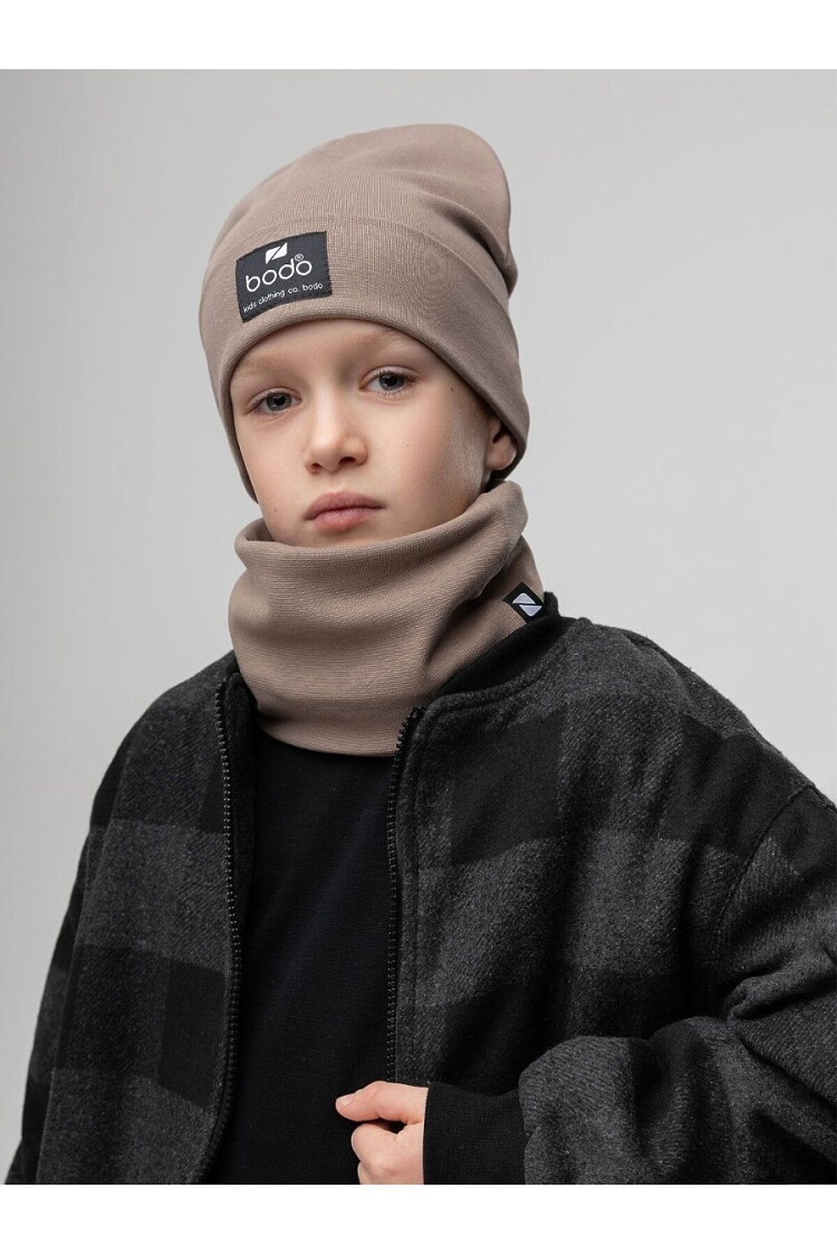 Комплект (шапка, снуд) с отворотом 13-161MU; коричневый