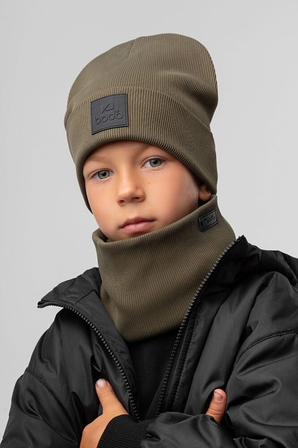 Комплект (шапка, снуд) с ПВХ нашивкой 13-162MU; хаки