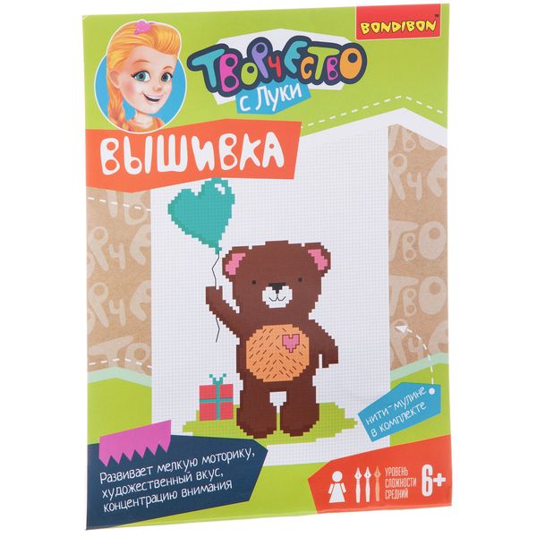 Набор для творчества BONDIBON. Вышивка на хлопковой канве. Мишка