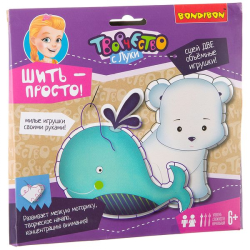 Набор для творчества BONDIBON. Шить - просто! (полярный мишка и кит)