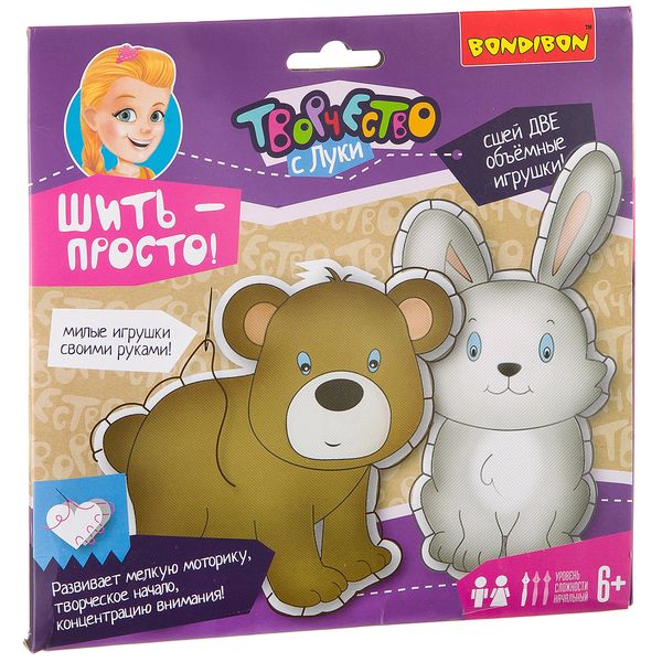 Набор для творчества BONDIBON. Шить - просто! (заяц и мишка)
