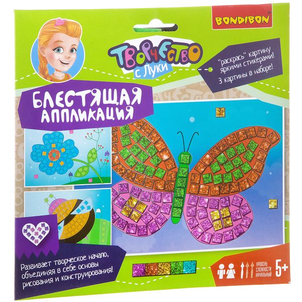 Набор для творчества BONDIBON. Блестящая аппликация (цветочная поляна)