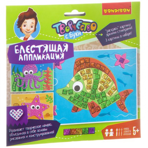 Набор для творчества BONDIBON. Блестящая аппликация (морские обитатели)