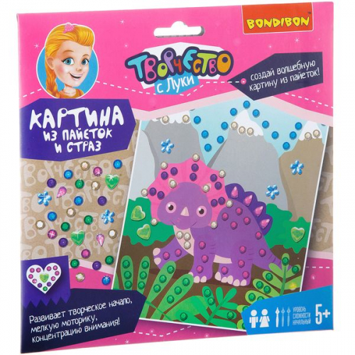 Набор для творчества BONDIBON. Картина из пайеток и страз. Динозавр