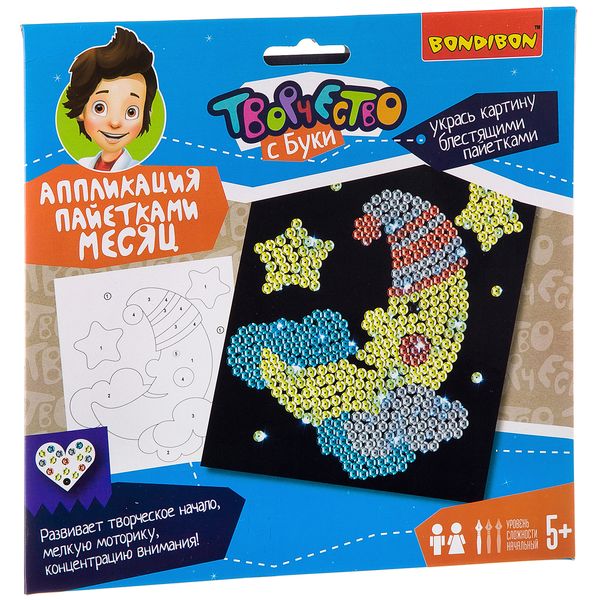 Набор для творчества BONDIBON. Аппликация пайетками. Месяц.